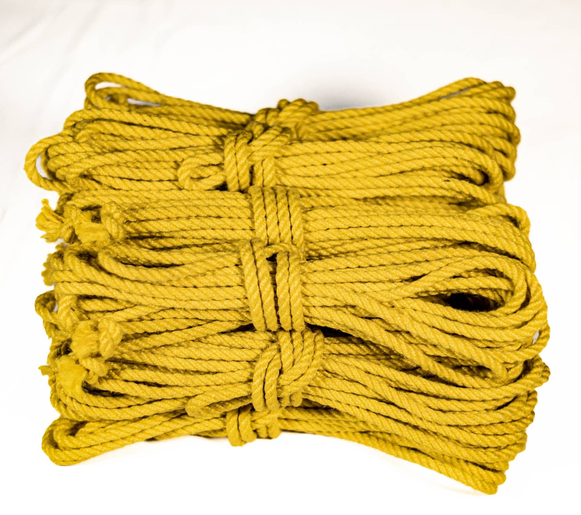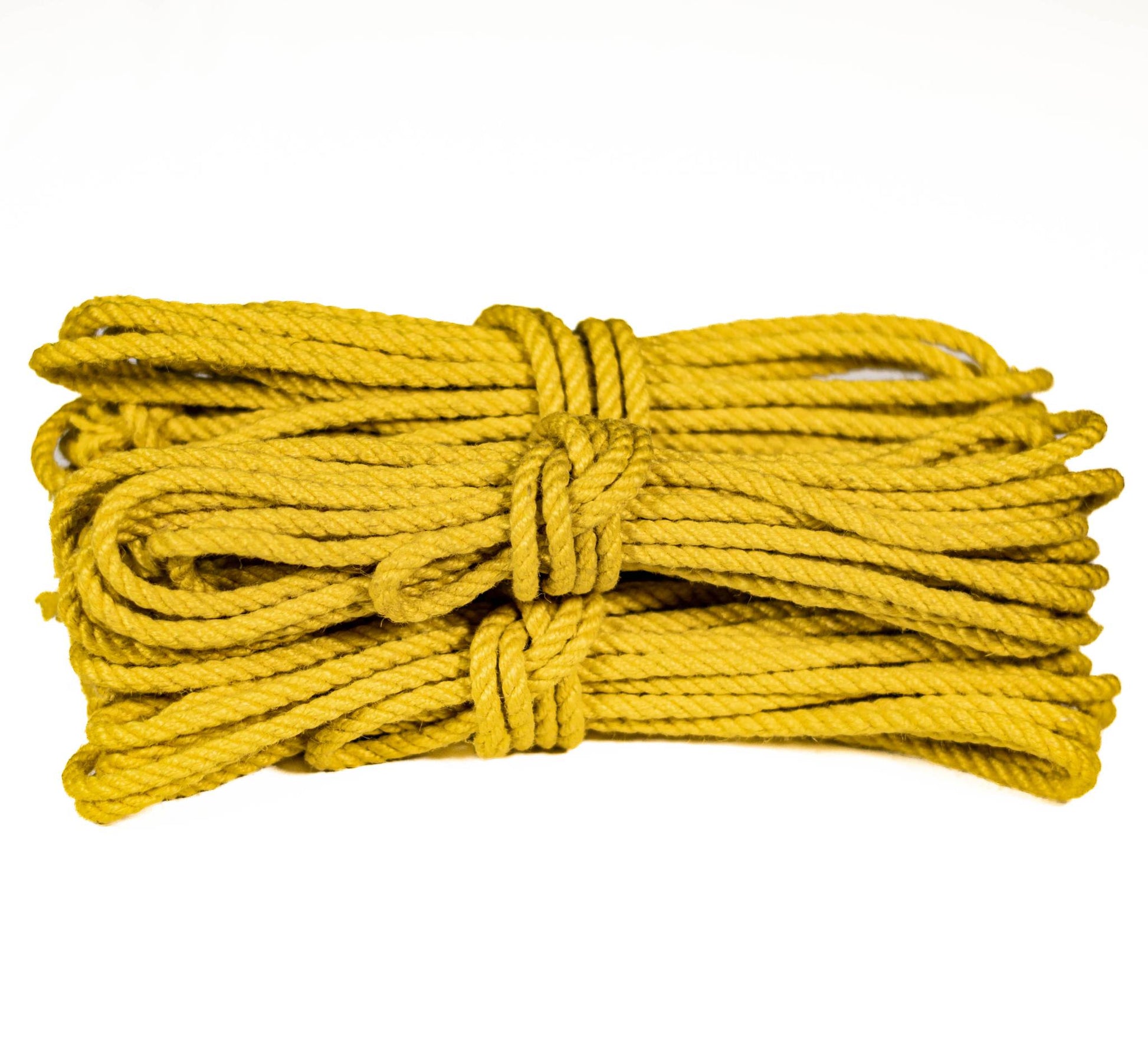 Let your ropes stand out with our yellow jute ropes. Specifically made and carefully hand-treated for shibari. Although not a particularly traditional colour for shibari ropes, these yellow ropes are ideal if you attend busy events and want to easy identify your ropes.